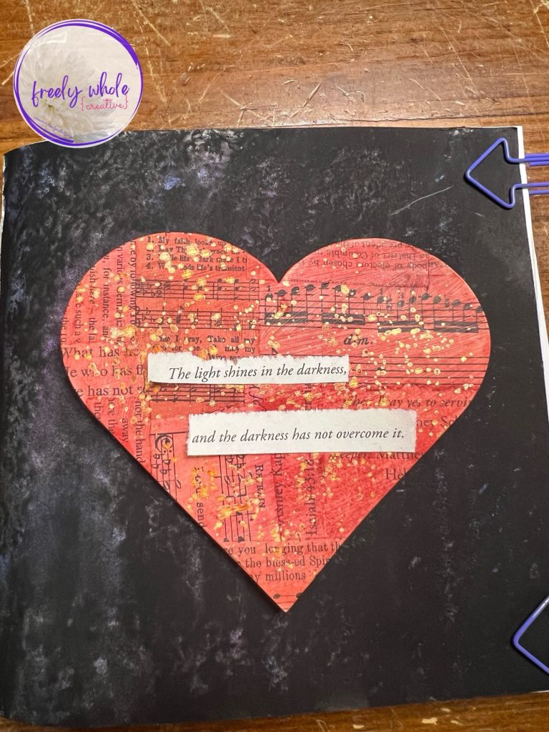 But as I dumped my envelope of book and music pages collage fodder on my desk, this verse was at the top of a scrap, on the top of my pile. ❤️