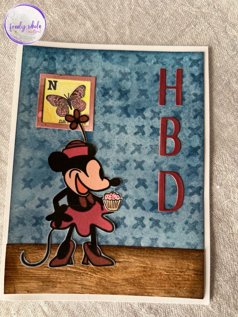 Another, (classic “girl mouse”,) adds to the inking, stenciling, and die cutting with dry embossing, coloring, and fussy cutting a digital image.